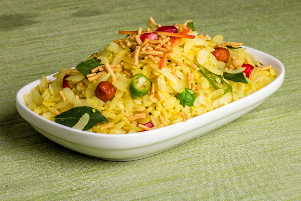 Inspired by Indian Poha, this rice is made with peanuts, pomegranate seeds, chopped green chilly, onion, lime, coriander leaves, curry leaves and Turmeric Active.